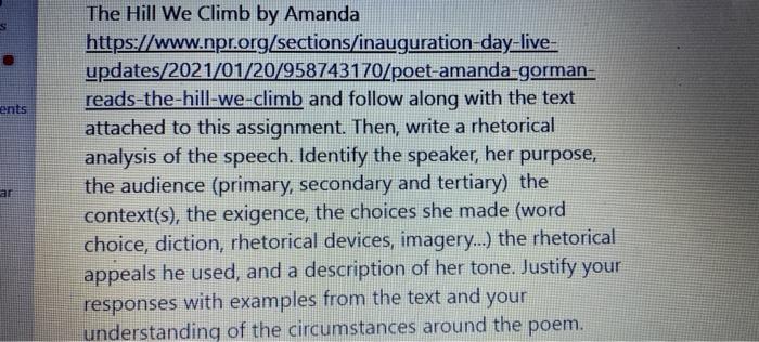 Ents The Hill We Climb By Amanda Chegg Com